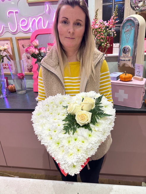 -Funeral flower basing technique- You can choose a letter or a 12” full heart, You will learn how to ribbon edge, base and add a cluster spray with traditional techniques